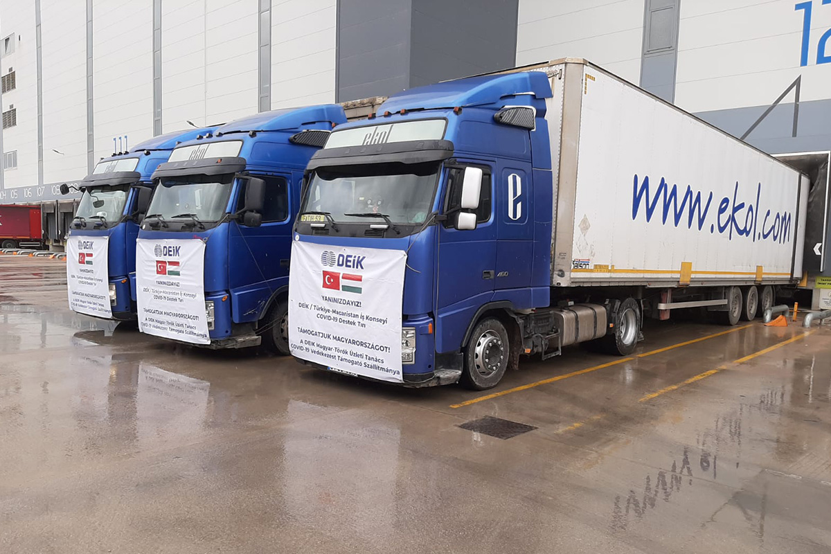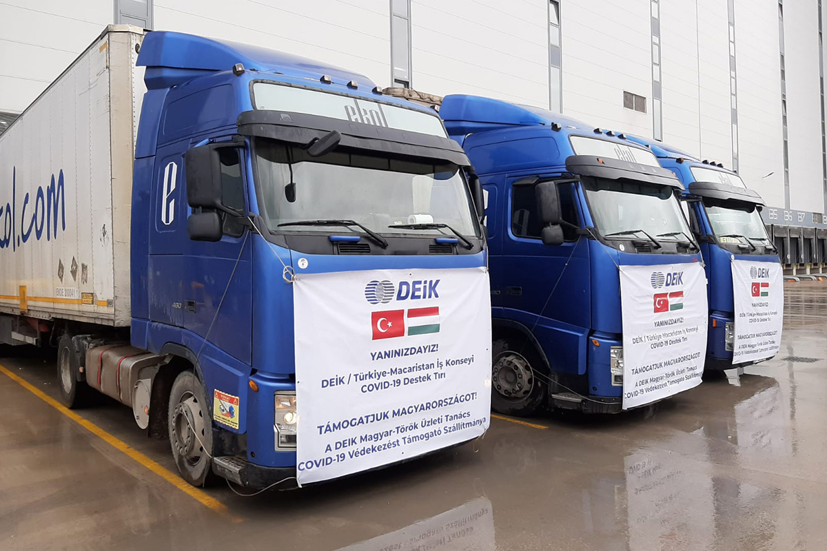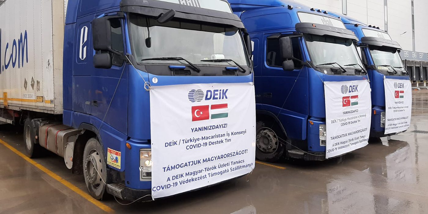 DEİK/Türkiye-Macaristan İş Konseyi üyesi olan Türkiye’nin öne çıkan şirketleri, iki ülkenin dostluğunun göstergesi olarak, Macaristan’a yardım konvoyu gönderdi. Yapılan maddi yardımlar ile yerli üretim olan yüz siperliği, el dezenfektanı ve kolonyadan oluşan tıbbi yardım malzemelerinin yer aldığı 3 TIR’lık yardım konvoyu yola çıktı.